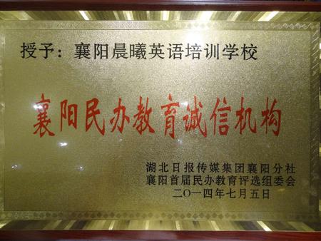 热烈祝贺我校被评为襄阳民办教育机构诚信办学单位。
